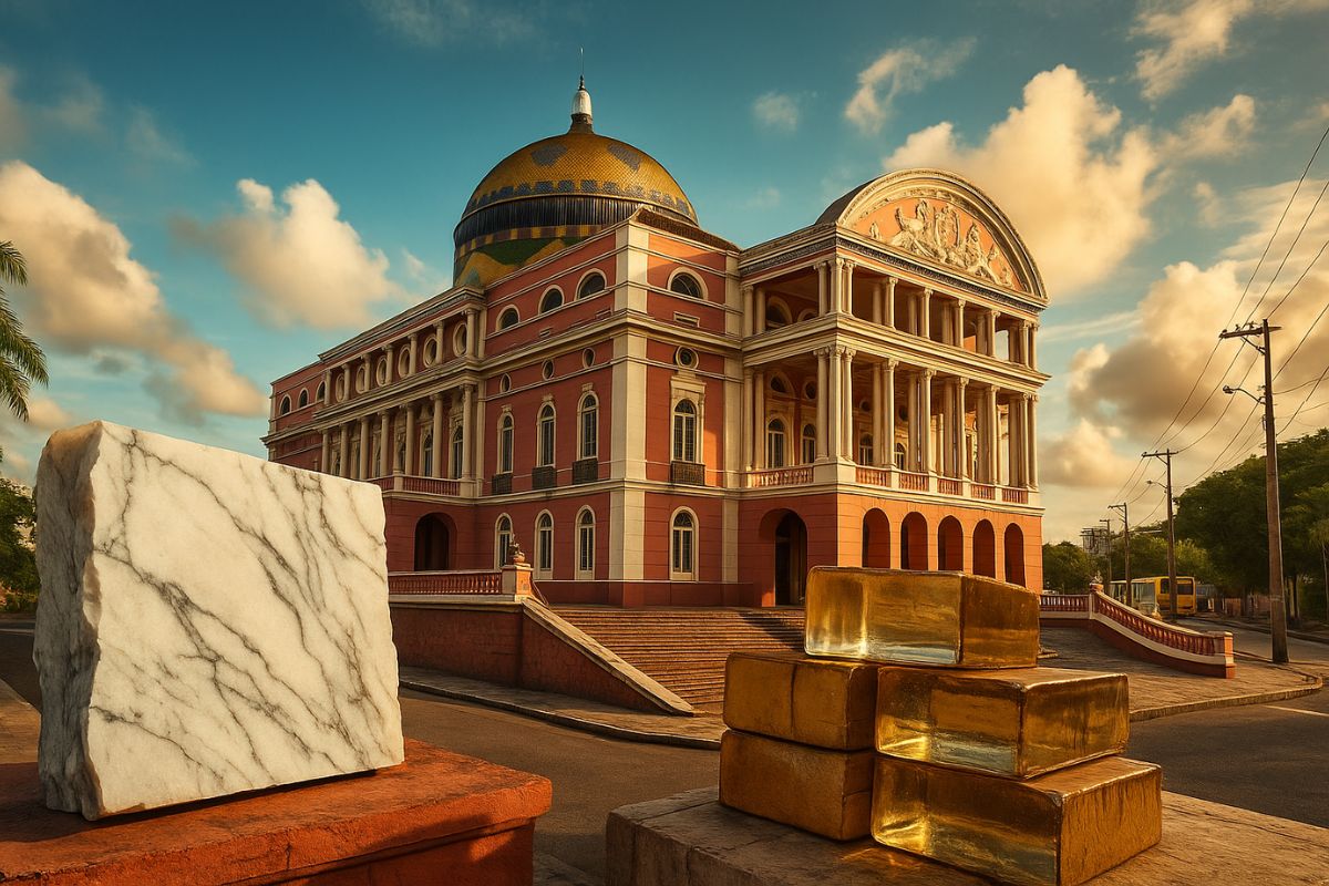 The Amazon Theater, in Manaus, was built at the peak of the rubber cycle with Carrara marble from Italy, glass and tiles from France, and cast iron from Scotland, symbolizing the era of luxury and ambition that marked the Amazon at the end of the nineteenth century.
