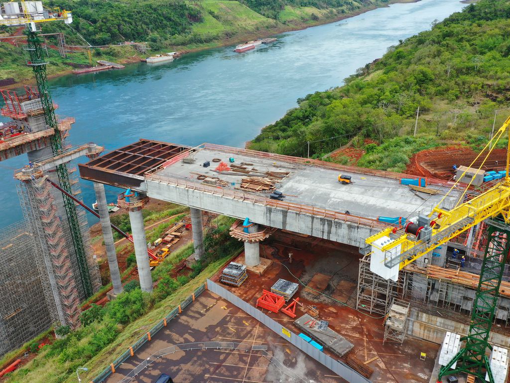 The construction of the International Integration Bridge, funded by the Itaipu Hydroelectric Plant, which will connect Foz do Iguaçu, Brazil, and Presidente Franco, Paraguay, is 49% complete and guarantees over 2500 jobs in the region. The expectation is that by the end of December, fifty percent of the project will be completed.