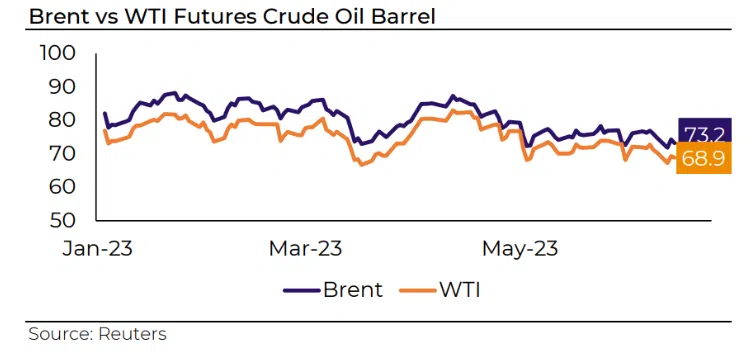 At the end of a busy week, speeches from monetary authorities, particularly from the Fed, leaving room for a possible interest rate hike, shook the markets. However, the sentiment that the contractionary monetary cycle is coming to an end, combined with optimistic news from China, fueled hopes for a more favorable outlook for global demand. Both oil benchmarks had a small weekly gain after declines in the last two weeks. Brent rose by 94 cents to US$76.61 (2.55%) and U.S. WTI gained $1.16 to US$71.78 (2.29%).