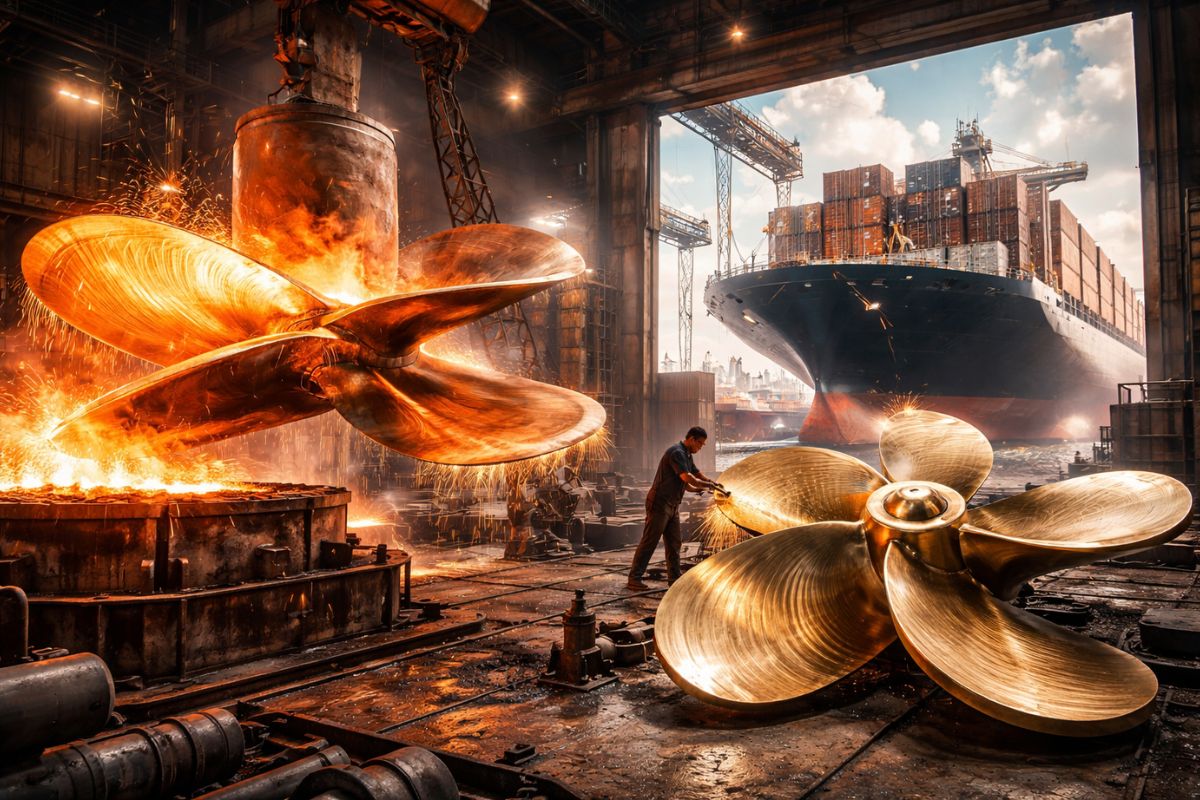 Science and Technology Weighing over 50 tons and measuring up to 11 meters, giant propellers are shaped from incandescent metal, polished with extreme precision, and propel 300-meter ships across the world’s oceans. Carla Teles 24/03/2026 at 22:42