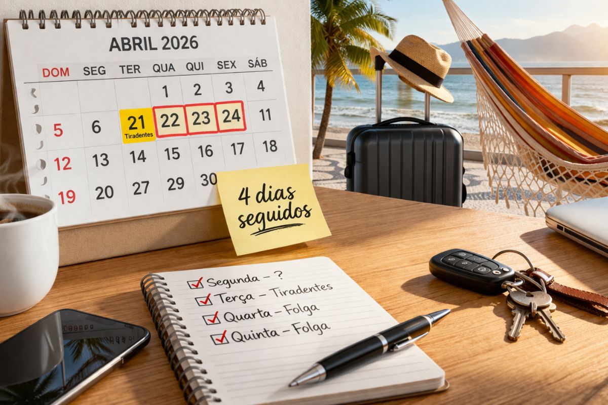 Economy April 2026 could yield 4 consecutive days off in Brazil with the Tiradentes holiday falling on Tuesday, a weekend, and a possible optional holiday on Monday, but time off depends on the companies’ decisions and is not guaranteed for everyone. Maria Heloisa Barbosa Borges 23/03/2026 at 11:34