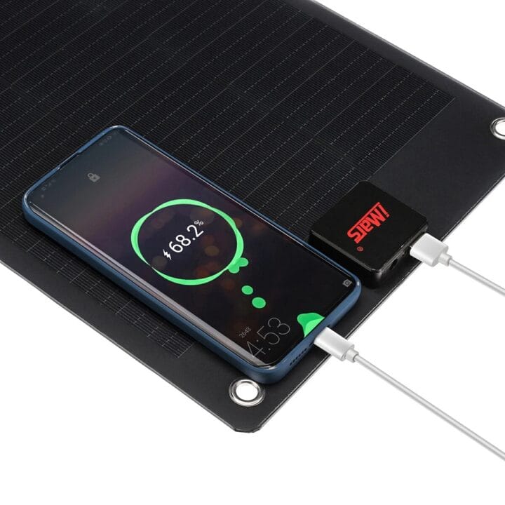 Promising to charge a cellphone with up to 18 Watts of power, the individual solar panel also has more powerful variants of the solar panel, capable of providing even greater charging capacity. iMars, the company responsible for its sale, offers a range of complementary devices. This specific model comes with a USB output and one for direct current, allowing its use with a wide variety of devices.