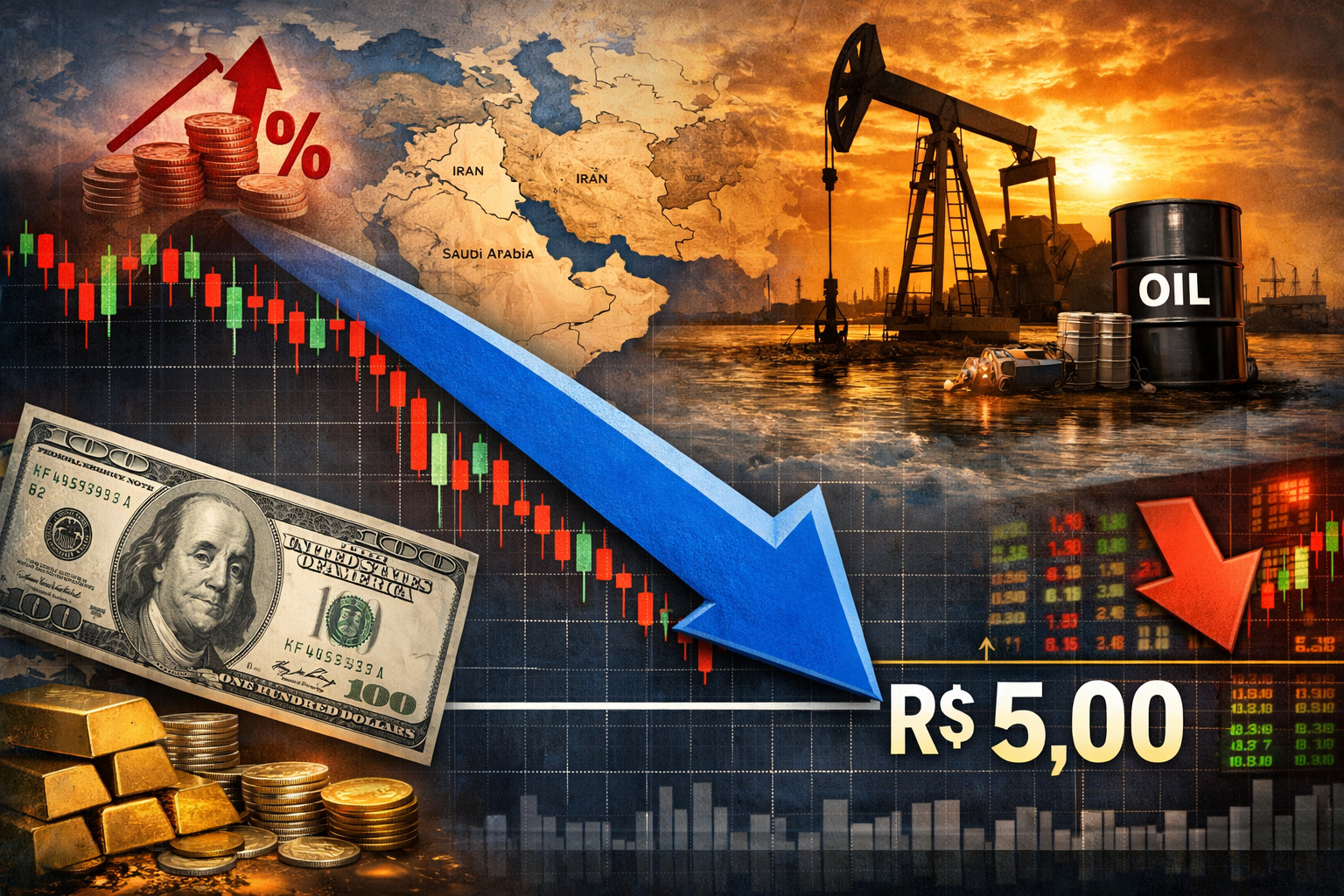 Weak dollar or strong real? The American currency plummets for the third day, approaching R$ 5 and surprising the market with global inflation and tensions in the Middle East that continue to create global uncertainty.