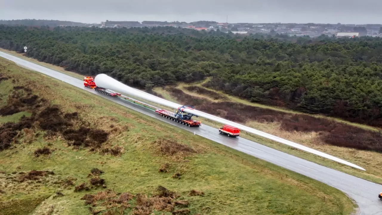 The set of giant blades measuring 115.5 meters to equip the tallest and most powerful wind turbine in the world Vestas V236-15.0 MWTM arrived at the port of Hanstholm on Sunday, December 18, and was then transported to the Østerild National Test Center in Denmark.