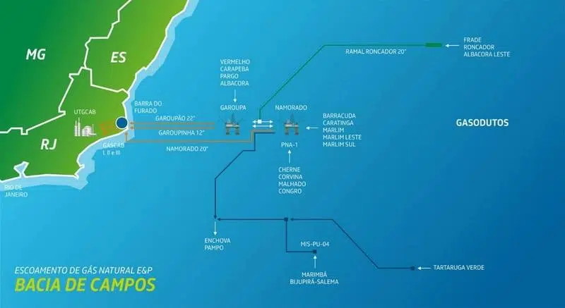 The Integrated System of Gas Flow (SIE-BC) consists of a network of maritime and terrestrial pipelines owned by Petrobras, which connect to the Gas Treatment Unit of Cabiúnas (UTGCAB), also owned by Petrobras, located in Cabiúnas, Rio de Janeiro.