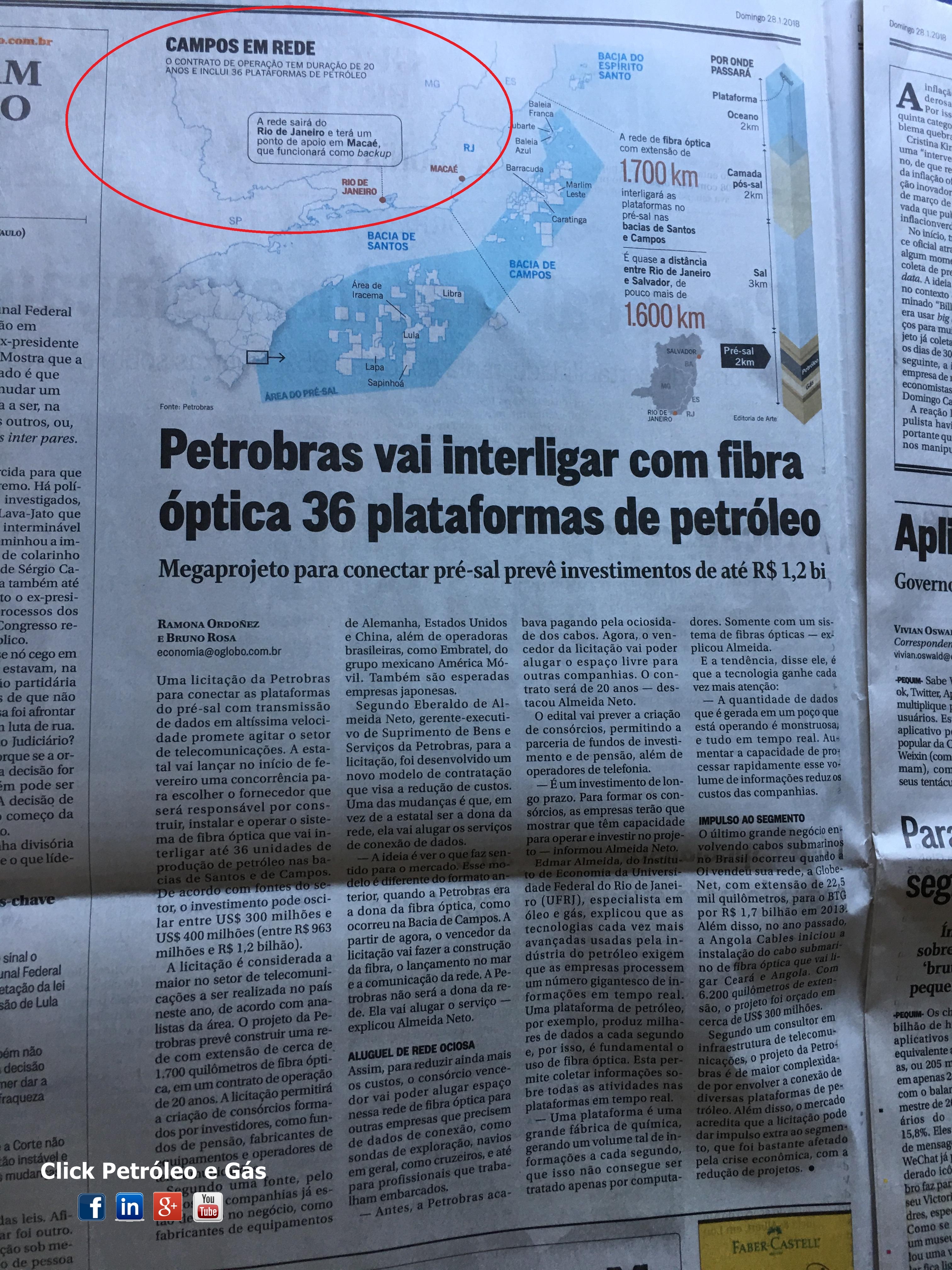 At this moment, companies from Germany, the United States, China, Japan, and Brazilian companies like Embratel have already expressed interest in the project; however, as soon as this news spreads worldwide, more companies will enter the “Hunger Games.” Here comes the good news! THE NETWORK WILL EXTEND FROM RIO DE JANEIRO AND WILL HAVE A SUPPORT POINT IN THE CITY OF MACAÉ-RJ. Stay tuned for the special publication in the newspaper below: