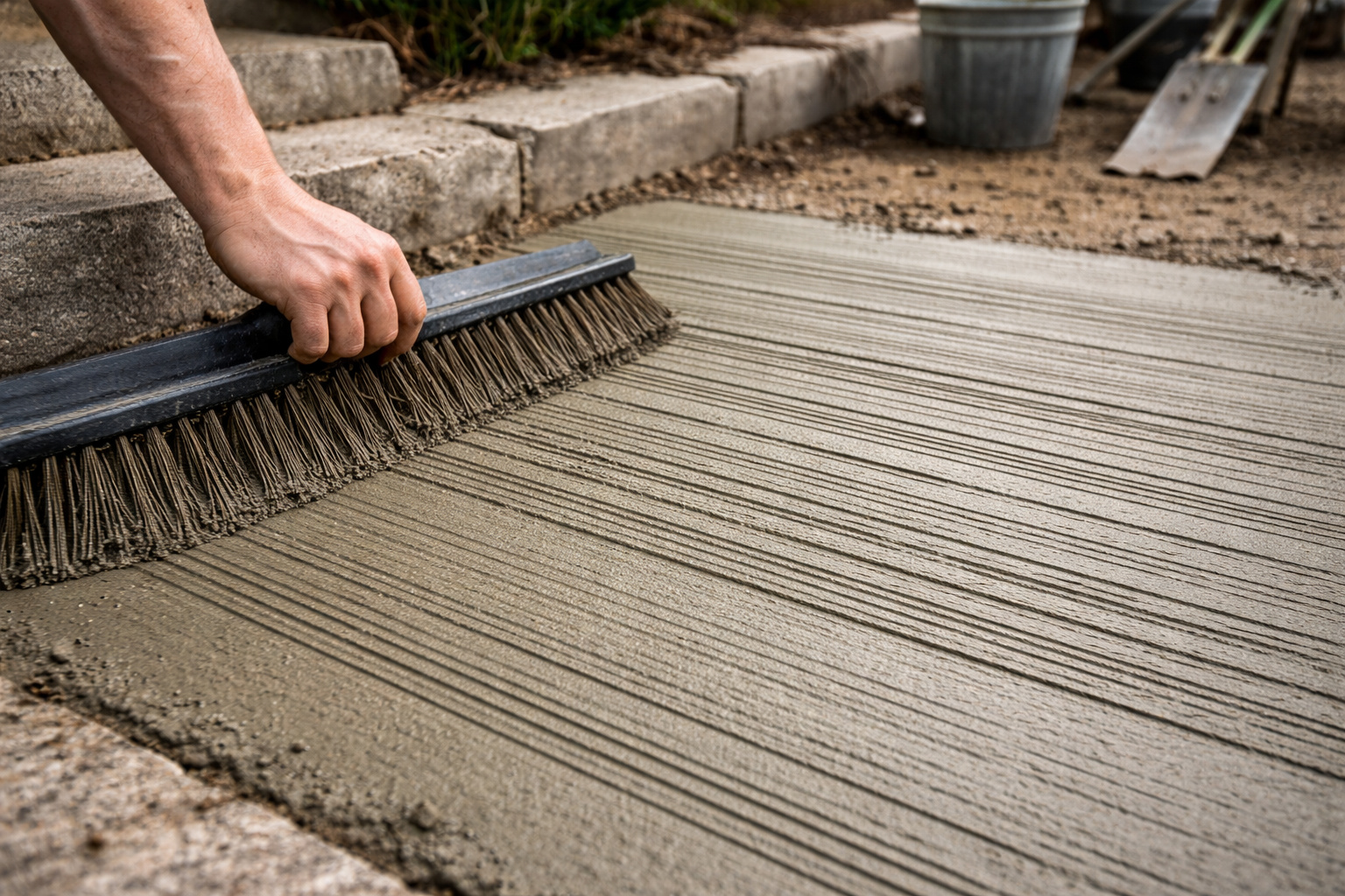 Each tool creates a slightly different texture pattern. Brooms with thicker bristles produce deeper grooves, while finer brushes create a smoother texture. The choice depends on the type of floor and the level of grip desired.