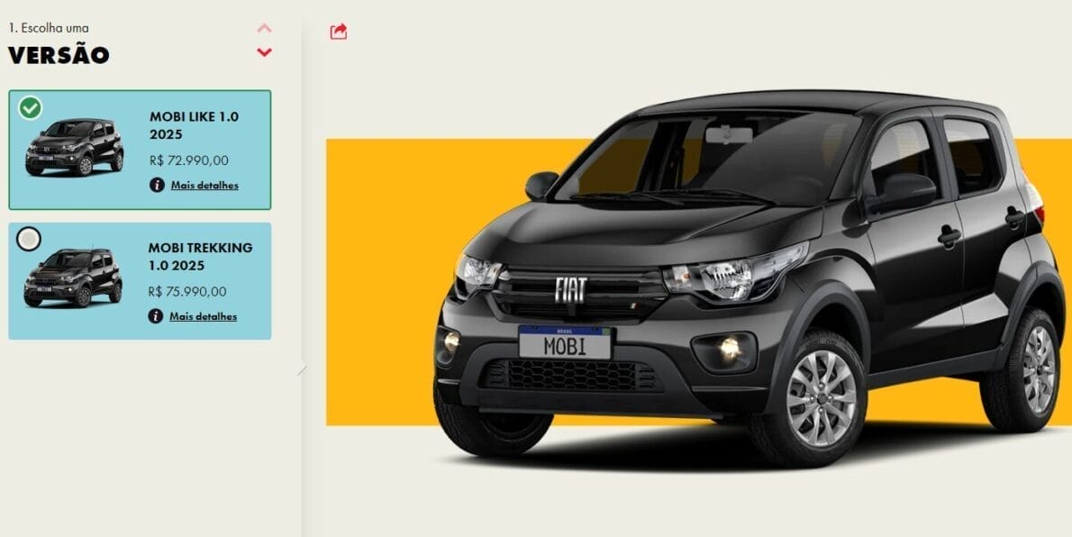 After receiving new safety equipment at the beginning of this year, the official Fiat website already displays the new Fiat Mobi 2025. The brand has not announced any news regarding the model, while the website does not seem to bring any new information about the car that is the cheapest from the brand and one of the cheapest in the country.