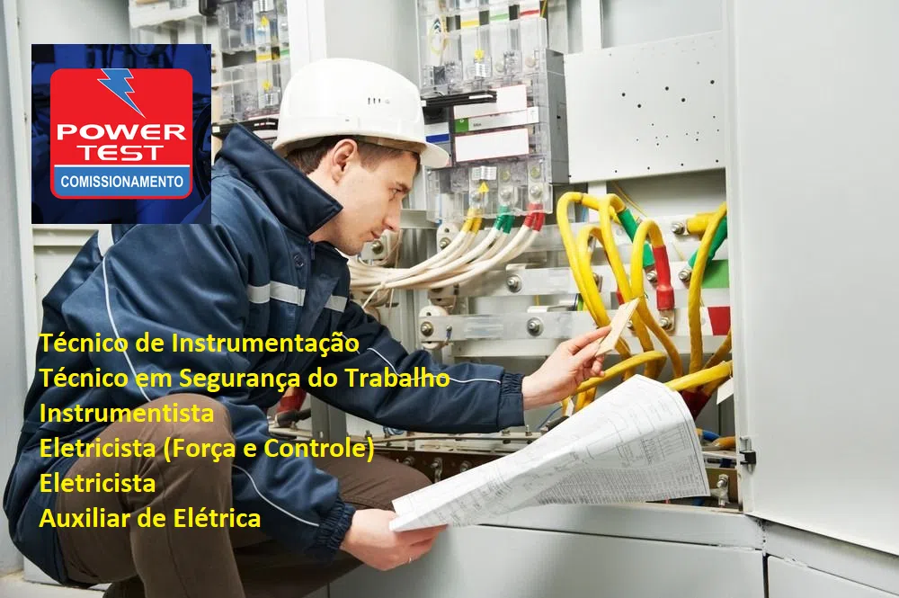 Power Test Comissionamento announced this Monday, June 17, through its official news outlet, the selection process for the positions of Instrumentation Technician, Occupational Safety Technician, Instrument Technician, Electrician (Power and Control), Electrician, and Electrical Assistant. It is required to have proven experience in the role in the work permit for all functions.
