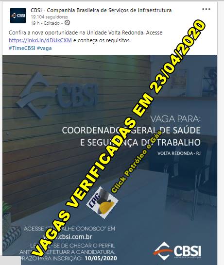 General Coordinator of Health and Occupational Safety – Volta Redonda RJ (click here to apply)