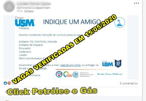 The company asks interested parties to send their resumes by tomorrow, May 16, indicating the position in the subject line to the email vagas@usm.ind.br. GOOD LUCK!