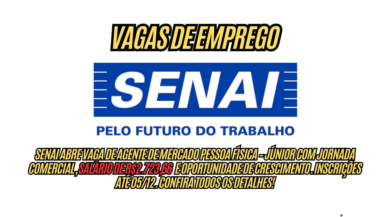 SENAI Opens Position for Market Agent Individual – Junior with Commercial Hours, Competitive Salary and Growth Opportunities. Applications Until 12/05. Check All the Details!