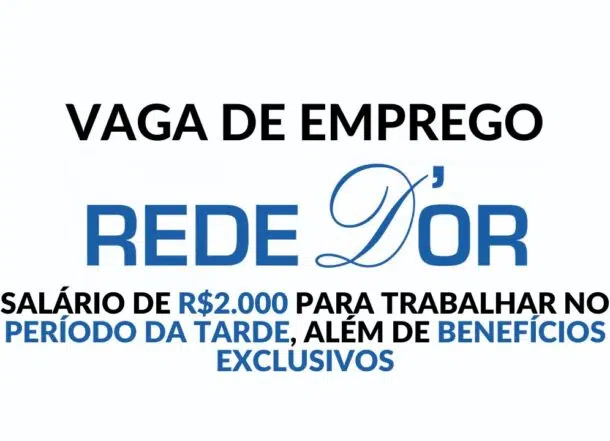 A Rede D’or São Luiz está com anúncio de vaga de emprego para o cargo de Telefonista, com contratação imediata e regime CLT. Com salário bruto mensal de R$ 2.000,00, a vaga oferece jornada parcial no período da tarde, além de benefícios e a oportunidade de atuar em um ambiente hospitalar estruturado e de referência. Quer saber como se candidatar? Fique até o final deste artigo e veja todos os detalhes.