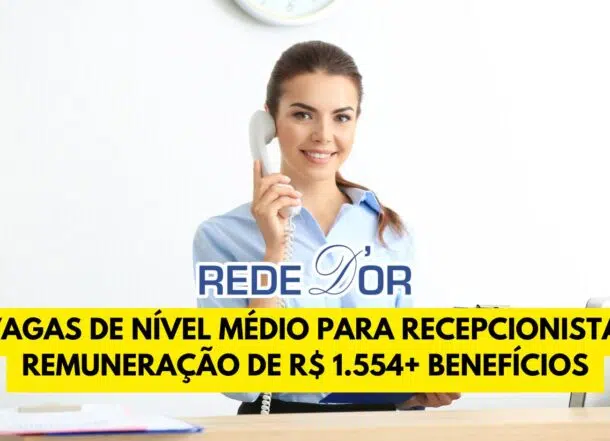 3. / Rede D’Or Is Hiring! Open Positions for High-School-Level Receptionist With Monthly Income of R$ 1,554 + Benefits