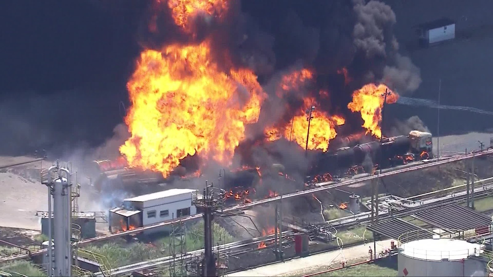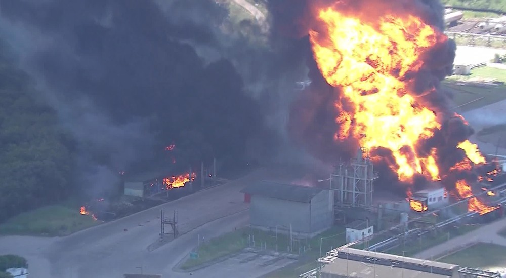 The Fire Started Around 1:30 PM at the Refinery. Two Teams from the Fire Department Are Fighting the Flames. Helicopter Images Show Burning Trucks. Residents Surrounding the Refinery Are Advised to Leave Their Homes as a Precaution.