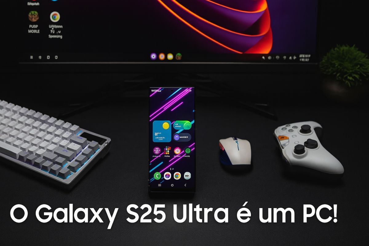 To measure its actual capacity to replace a gaming PC, the device was connected to a keyboard, mouse, and external monitor via a USB-C hub and Samsung DeX. The desktop interface, present in One UI 7, remains functional and proved stable during use, allowing multitasking, floating windows, and support for full-screen games. The visual experience, in fact, is worthy of a laptop: with a 6.9-inch AMOLED display, 120 Hz, and brightness of up to 2,600 nits, the S25 Ultra offers superior image quality compared to many laptops sold in the Brazilian retail market.