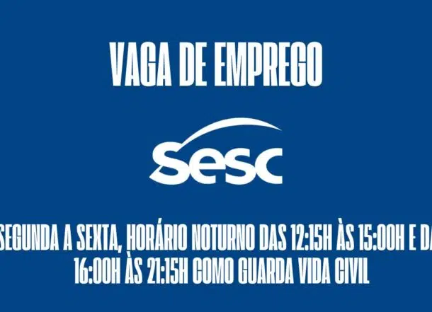Sesc está procurando interessados em trabalhar de segunda a sexta, horário noturno das 12:15h às 15:00h e das 16:00h às 21:15h como guarda vida civil: Oferece ótimo salário + benefícios atrativos, veja como garantir a vaga