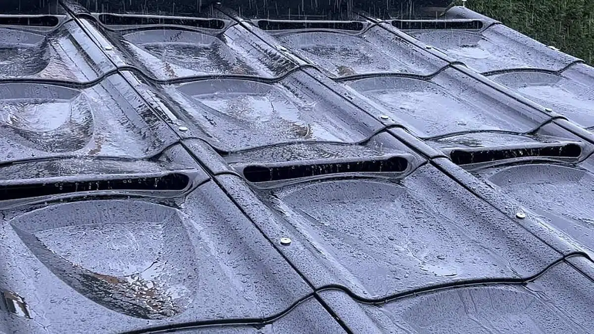 The Cactile tiles are made of galvanized steel and have a special design to capture rainwater. In this way, they prevent debris like leaves and branches from passing through, ensuring that the collected water is clean and ready for use. About 96% of the rainwater that falls on the roof goes through the filtration process and is then stored in reservoirs. This water can be used for various purposes, from supplying faucets to irrigation systems.