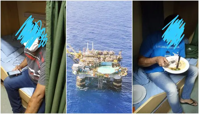 In the photos below, it is possible to understand the drama of outsourced workers and despite the situation, Petrobras has not stopped production on the platform. The information received indicates that 4 workers from Elfe Engenharia, 2 from Halliburton and 3 more from another unidentified company were in confinement.