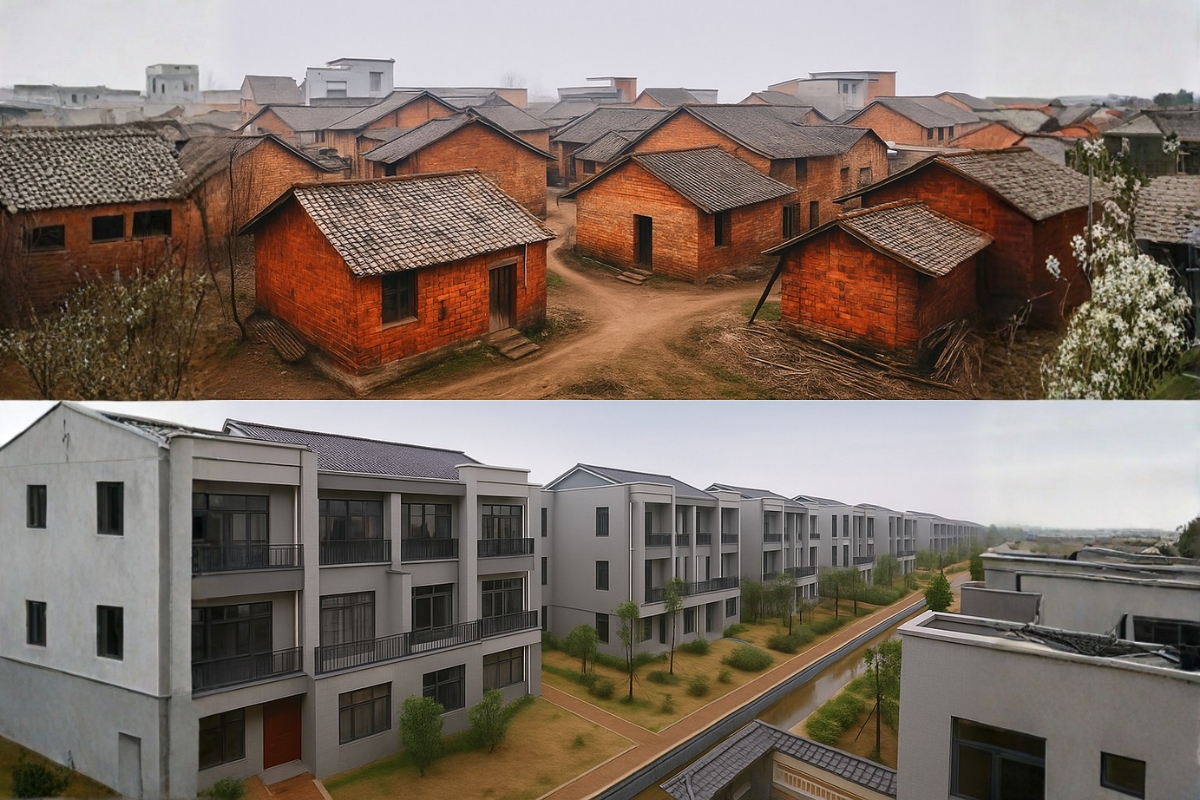 Xinyu, China – The story of a billionaire who allegedly demolished the wooden houses in his hometown and built free luxury apartments for all residents went viral on social media in 2014.