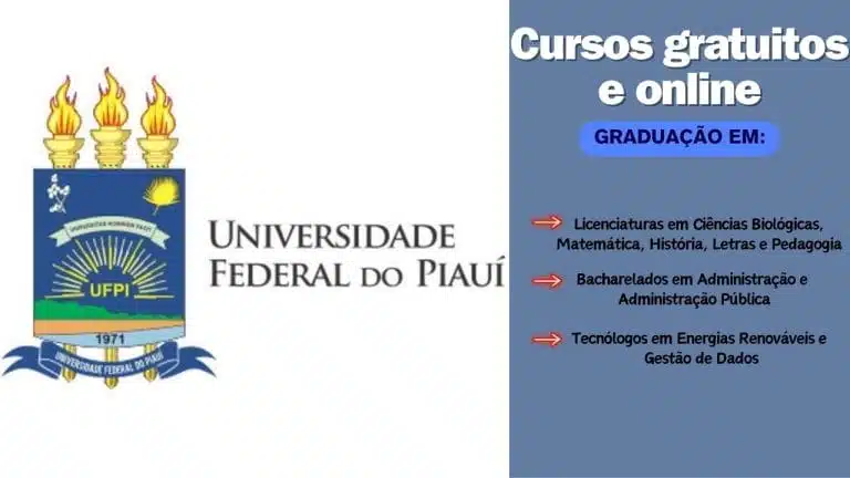 The free courses offered by the Federal University – UFPI cover various areas of knowledge, from the humanities to technology. The distance learning modality allows you to study at your own pace and place, balancing studies with other activities. The workload varies according to each course, but all offer a comprehensive and updated education, with online classes, discussion forums, and practical activities.
