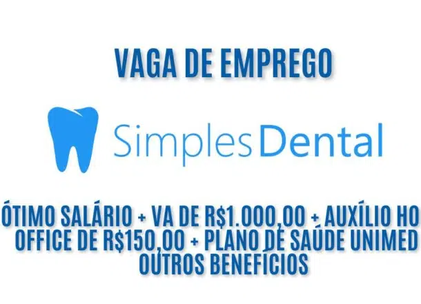 Vaga de emprego home office! A Simples Dental está procurando interessados em trabalhar em casa; Oferece ótimo salário + VA de R$1.000,00 + auxílio home office de R$150,00 +  plano de saúde Unimed e outros benefícios – Veja como garantir a vaga de emprego