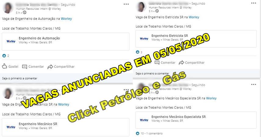 ATTENTION! Click Oil and Gas is not responsible for applications; the job vacancies below for MG, opened by Worley this afternoon (5), are external and may expire at any moment on the company’s website.