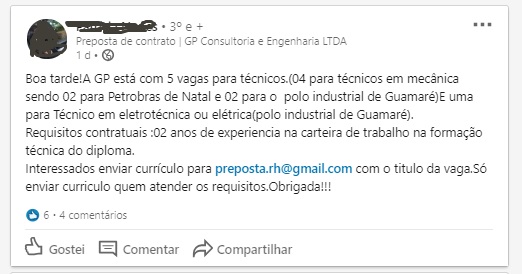 To Meet Projects from the Brazilian State Company Petrobras in Natal, GP Consulting and Engineering Announced Job Openings for Technical High School