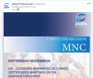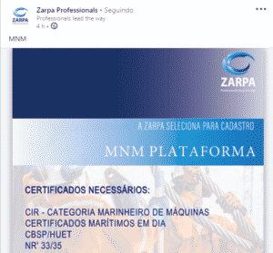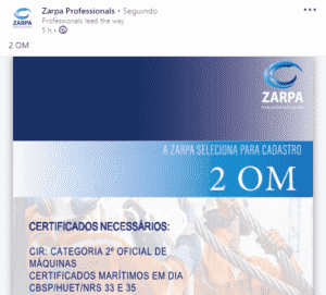 If you are interested in any of the offshore job openings described above, send your resume with salary expectations to curriculo@zarpa.com.br, mentioning in the subject line the title of the desired offshore position.
