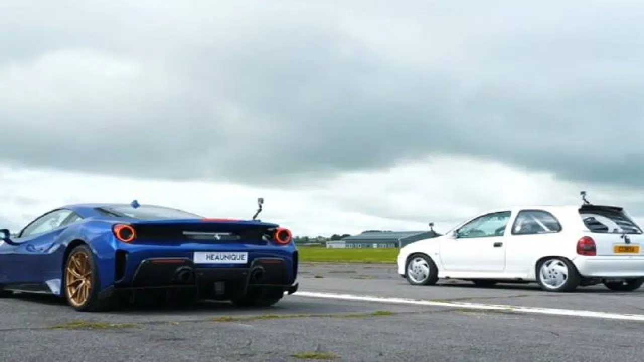 When It Came Down To It, The Race Between The Vehicles Was Tight, And Although The Janitor’s Corsa Started With A Wide Lead, It Was Reached By The Ferrari 488 Pista, Which Covered 400 Meters In 11 Seconds, Against 11.9 Seconds For The Vehicle With Two Engines.